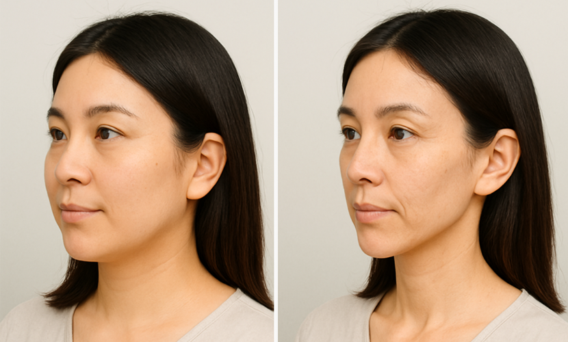 GLP-1製剤は脂肪の減少を全身的に促すため、「どこから痩せるか」を選べません。その結果、マンジャロなどのGLP-1ダイエットは、顔の皮下脂肪が失われ、ほうれい線・目の下のくぼみ・たるみが目立つようになり、顔の脂肪が落ちて老け込んでしまうリスクがあります。